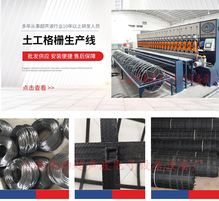 我公司制造土工格室生產線設備,是由多臺超聲波塑料焊接機組合而成采用進口PLC控制具有如下先進特點: