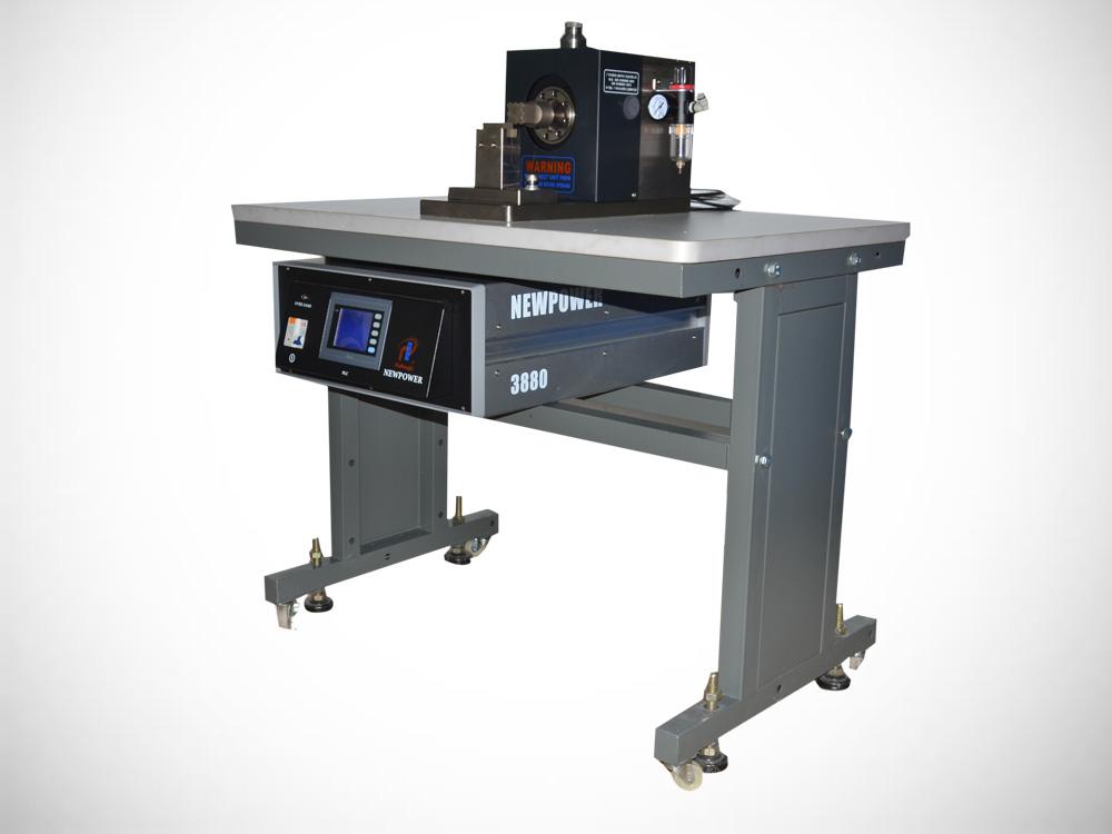 三、定位底模:將氣源斷開讓超聲波焊接頭自動下降,然后將模的上端部分放在超聲波焊頭的下方正中位置并將其用夾塊固定在工作臺上面。