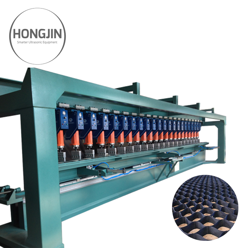 我公司制造土工格室生產線設備,是由多臺超聲波塑料焊接機組合而成采用進口PLC控制具有如下先進特點: