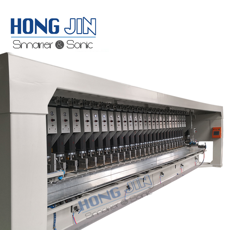我公司專業生產土工格柵生產線設備,是由多臺超聲波塑料焊接機組合而成,采用進